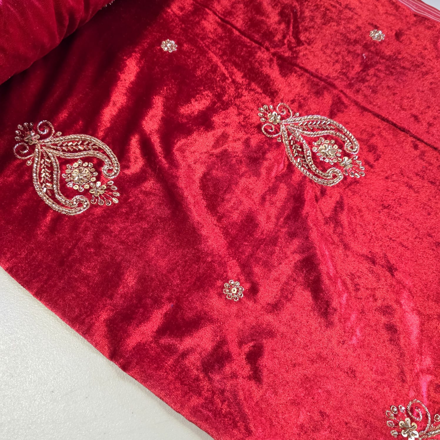 Velvet Gold Zari Embroidery Fabric Indian Wedding Dress Craft Material 58" Wide By The Meter