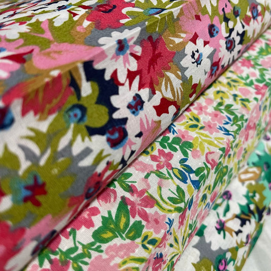 - Printed cotton fabrics – florals, spots, stripes, and novelty designs.
