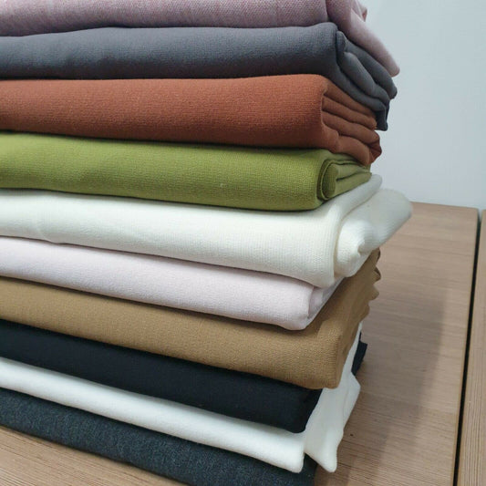 - Rib knit fabrics β stretchy textures perfect for cuffs, collars, and fitted designs.