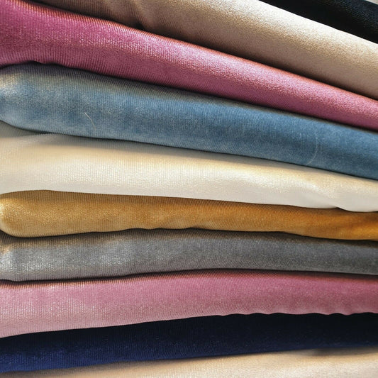 Whether you’re sewing a luxurious gown, plush cushions, or dramatic stage costume, our velvet fabrics by the metre ensure every stitch is rich, soft, and elegant.