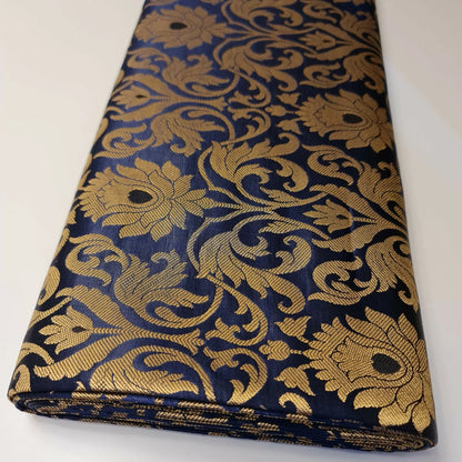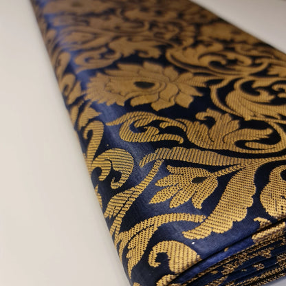 Luxurious Floral Banarasi Brocade Fabric | Premium Indian Gold Metallic Jacquard Woven Material 44" (112cm) Wide – Sold by the Metre