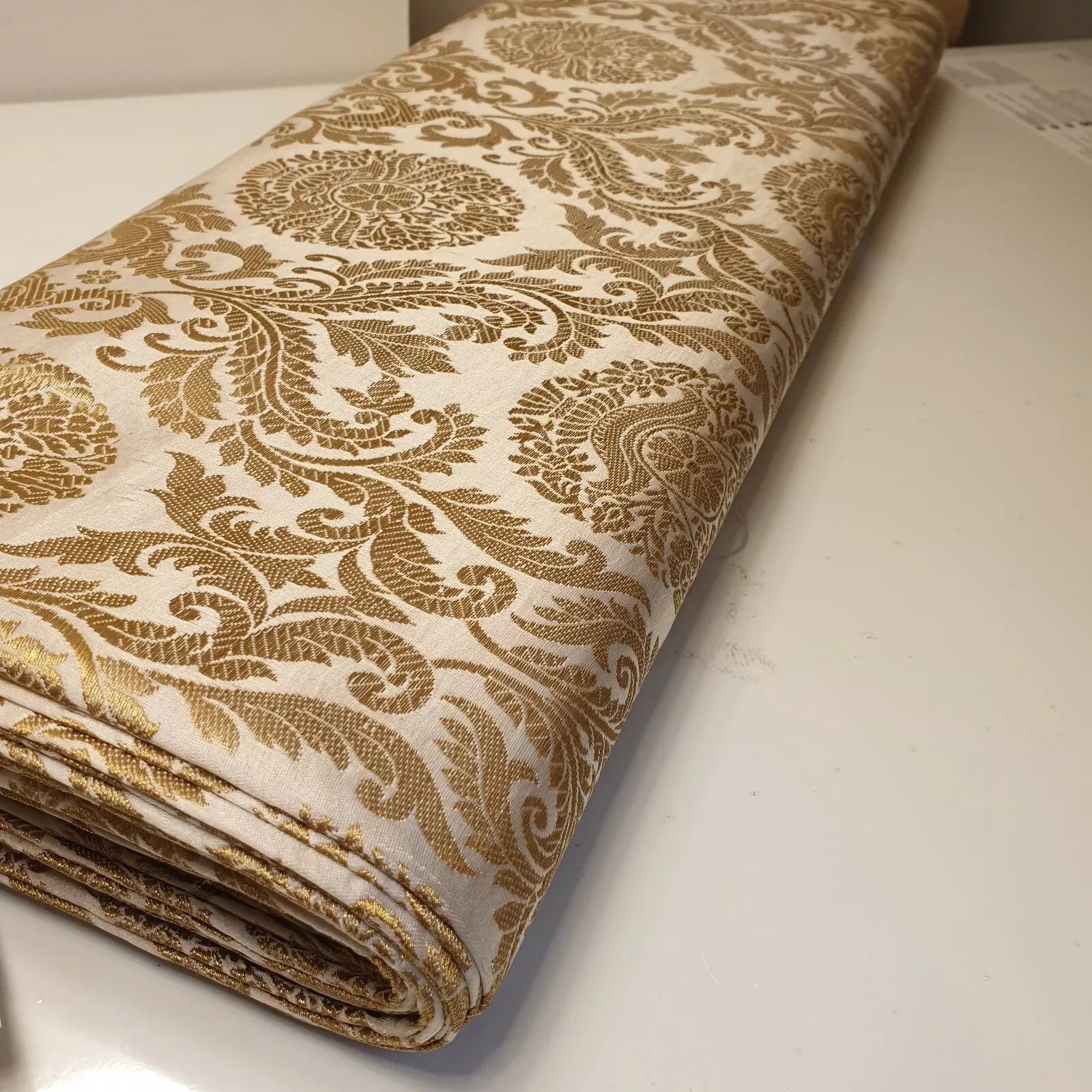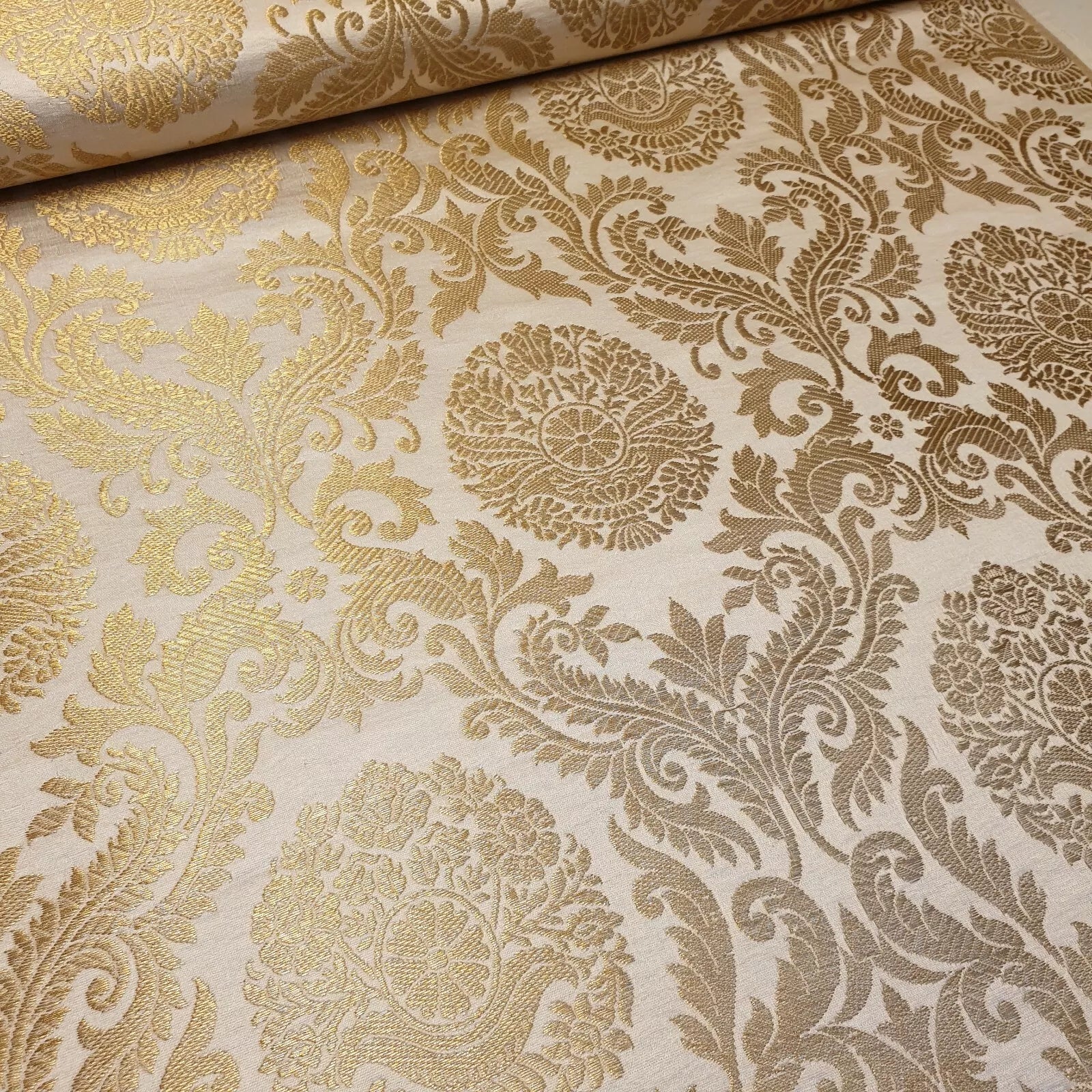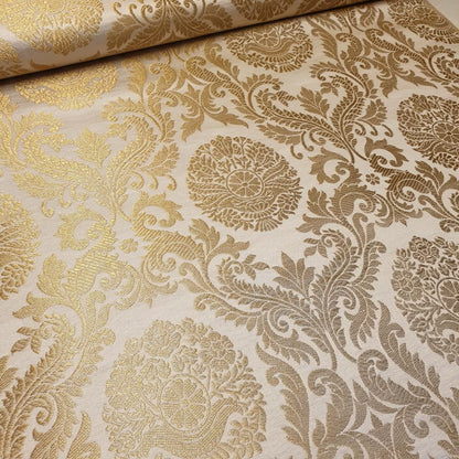 Brocade Ornamental Floral Fabric | Gold Metallic Jacquard 44" (112cm) Wide Dressmaking, Costume & Craft Material – Sold by the Metre
