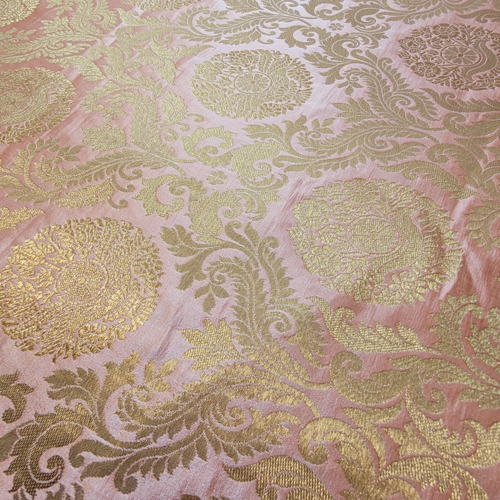 Brocade Ornamental Floral Fabric | Gold Metallic Jacquard 44" (112cm) Wide Dressmaking, Costume & Craft Material – Sold by the Metre