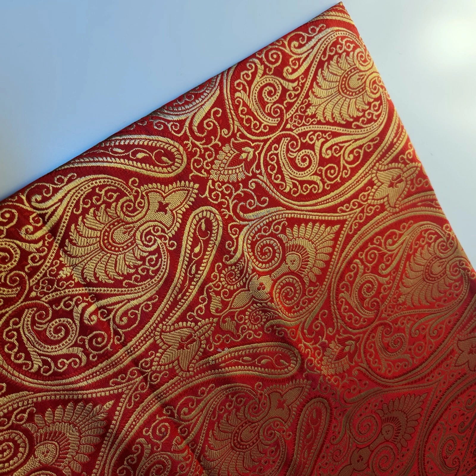 Ornamental Paisley Indian Banarasi Brocade Fabric | 44" (112cm) Wide Luxurious Decorative Jacquard Material – Sold by the Metre