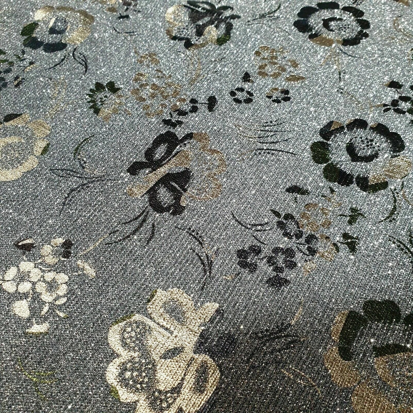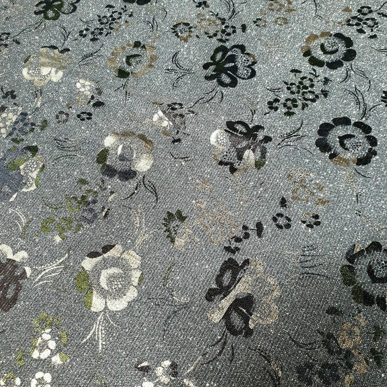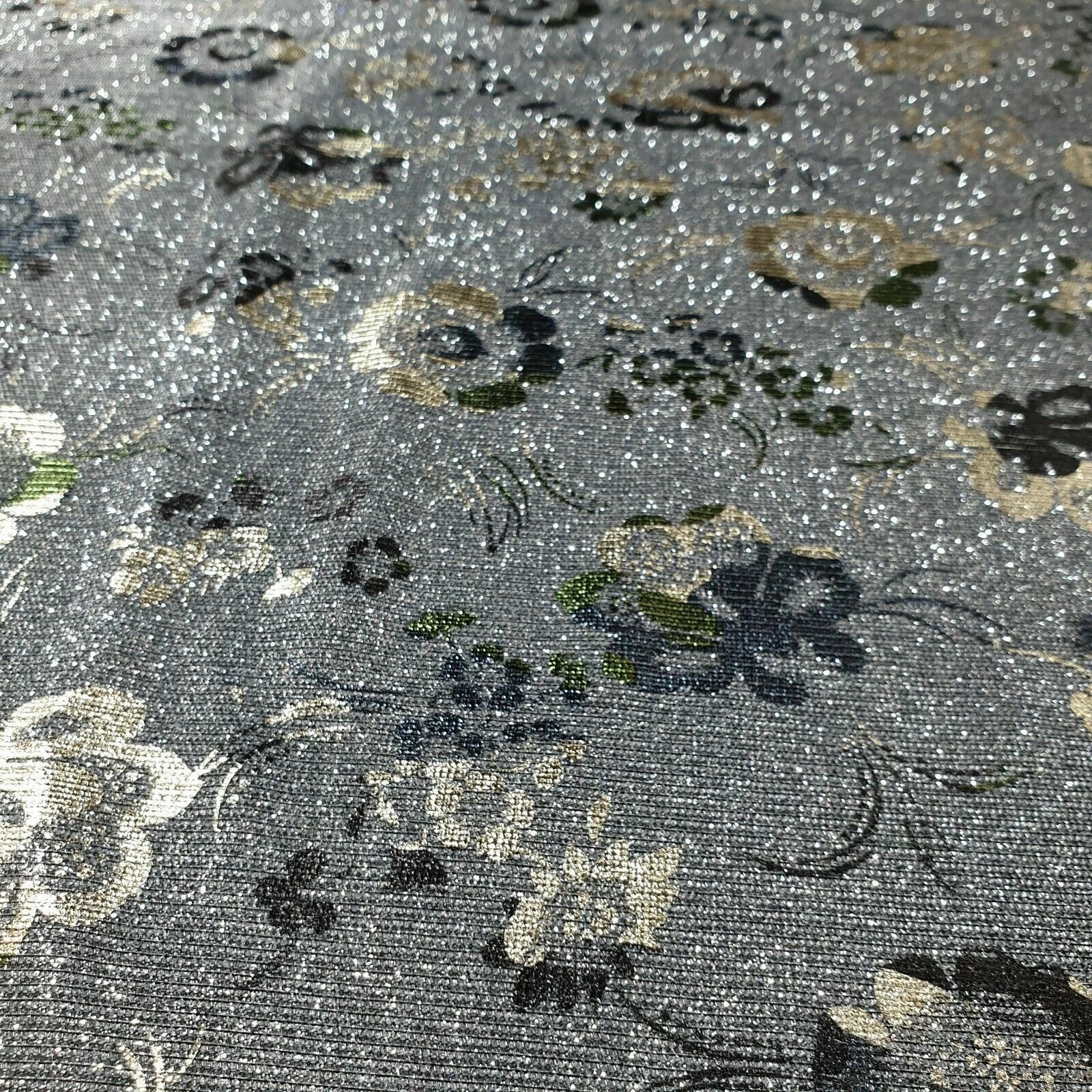 Shimmer Moonlight Floral Printed Glitter Nylon Fabric | 58" (147cm) Wide Stretch Backdrop, Dress & Craft Material – Sold by the Metre